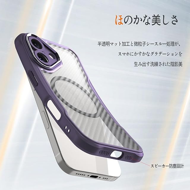 商品名:Panda Baby iPhone 17 用 ケース MagSafe対応 半透明 マット質感 指紋防止 耐衝撃バンパー マグネット搭載 レンズ全面保護 「おしゃれなカーボン調」 (パープル)