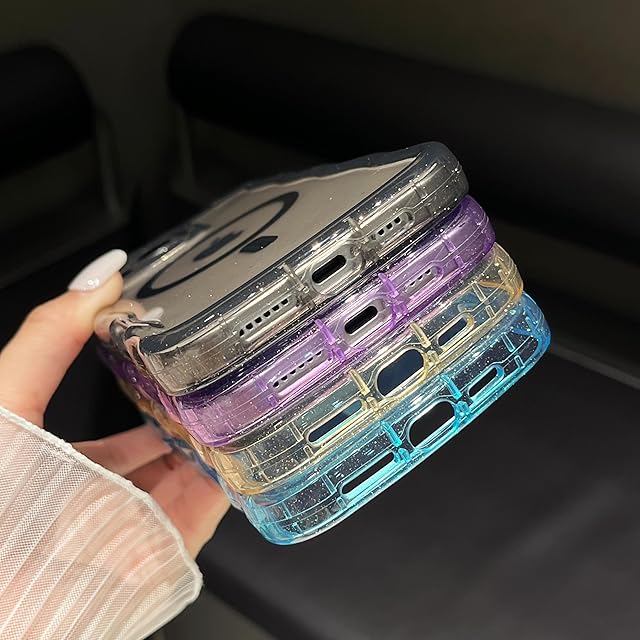 ZTOFERA for iPhone 15 ケース,MagSafe 対応,クリア キラキラ カーリー ウェーブ フレーム 女性用 女の子用 男性用,iPhone 15 用スマホケース,ブラック