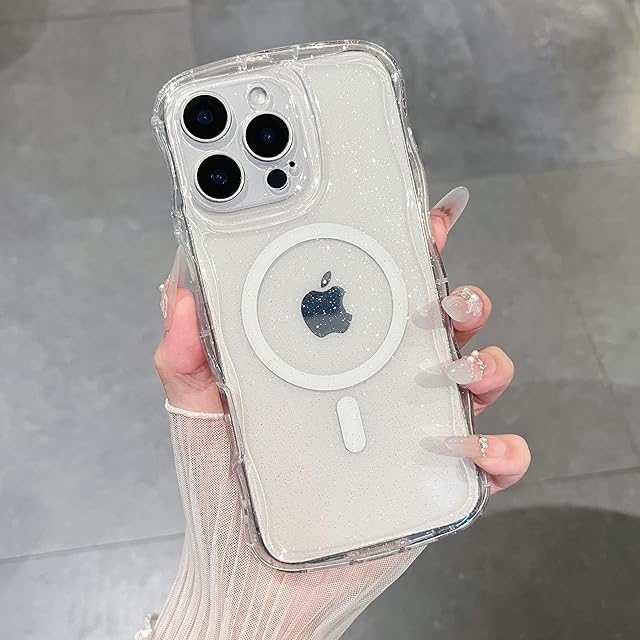 商品名:ZTOFERA for iPhone 16 Pro ケース,MagSafe 対応,クリア キラキラ カーリー ウェーブ フレーム 女性用 女の子用 男性用,iPhone 16 Pro 用スマホケース,透明