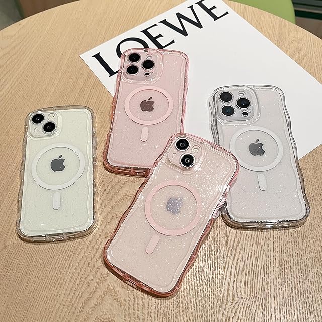 ZTOFERA for iPhone Air ケース,MagSafe 対応,クリア キラキラ カーリー ウェーブ フレーム 女性用 女の子用 男性用,iPhone Air 用スマホケース,ブラック