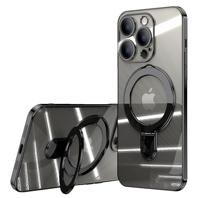 MuZiF iPhone 14 Pro 用 ケース MagSafe対応 リング付き クリア メッキ加工 カバー 車載ホルダー対応 多機能 レンズ保護 薄型軽量 耐衝撃構造 透明柔らかいTPU アイフォン14 Pro 用 磁気カバー クリアケース(iPhone 14Pro,ブラック)