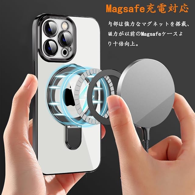 商品名:MuZiF iPhone 15 Pro 用 ケース MagSafe対応 リング付き クリア メッキ加工 カバー 車載ホルダー対応 多機能 レンズ保護 薄型軽量 耐衝撃構造 透明柔らかいTPU アイフォン15 Pro 用 磁気カバー クリアケース(iPhone 15Pro,ブラック)