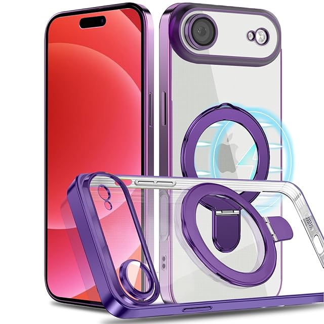 商品名:MuZiF iPhone Air 用 ケース MagSafe対応 リング付き クリア メッキ加工 カバー 車載ホルダー対応 多機能 レンズ保護 薄型軽量 耐衝撃構造 透明柔らかいTPU アイフォンAir 用 磁気カバー クリアケース(iPhone Air用,パープル)