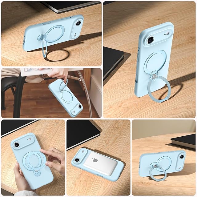 YINLAI iPhone Air 6.5インチ 専用 ケース カバー スマホケース ブルー 水色|360度リングスタンド付き・耐衝撃・落下防止・指紋防止・黄変防止|Magsafe・マグセーフ・ワイヤレス充電・磁気アクセサリー 対応|食品グレード・シリコン|耐久性・レンズ保護・保護・ソフト・滑り止め|通勤・仕事・便利・軽量・スリムフィット・シンプル