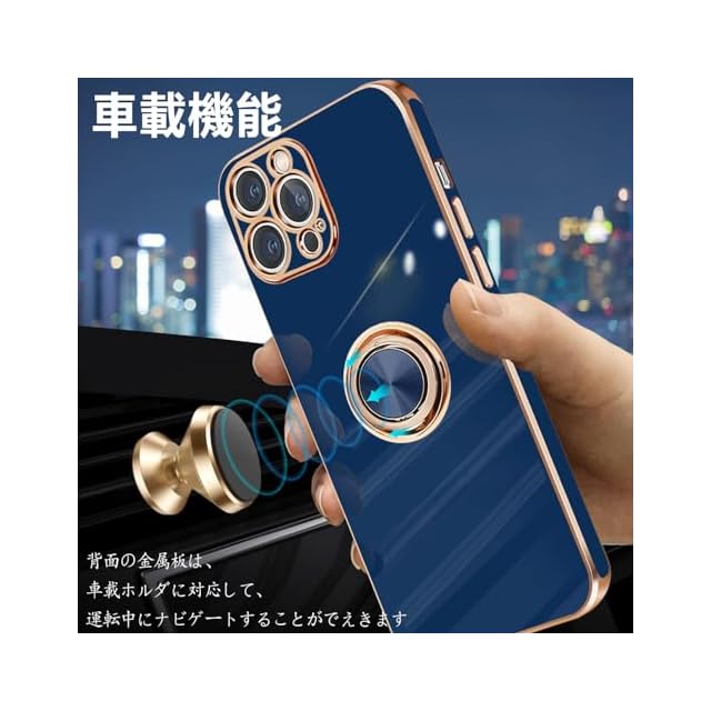 商品名:MiaoKeDa iPhone 12 ProMax ケース リング 耐衝撃 いphone12ProMax リング付き スマホケース TPU 車載ホルダー ストラップホール付き メッキ加工 カバー ネイビーブルー