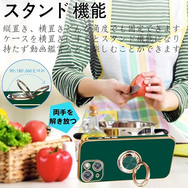 商品名:MiaoKeDa iPhone 13 ケース リング 耐衝撃 いphone13 リング付き スマホケース TPU 車載ホルダー ストラップホール付き メッキ加工 カバー ダークグリーン