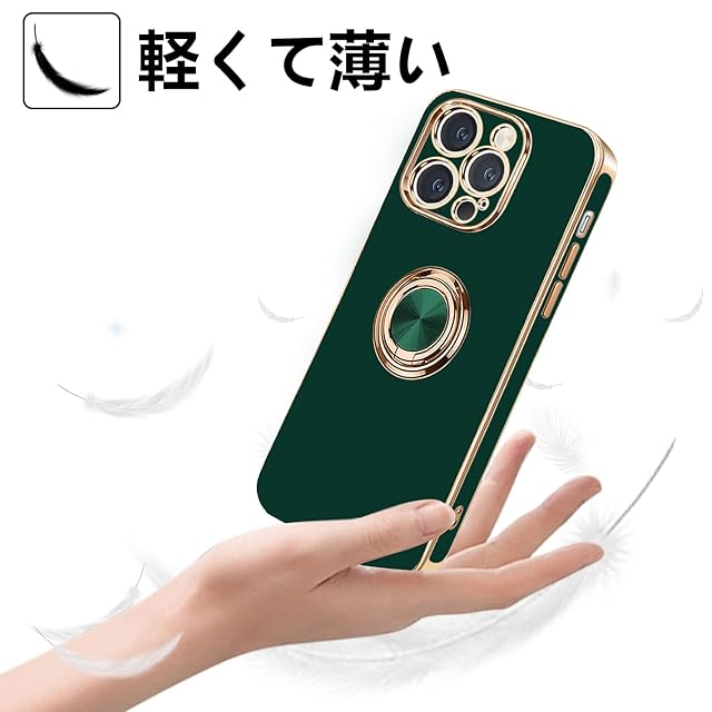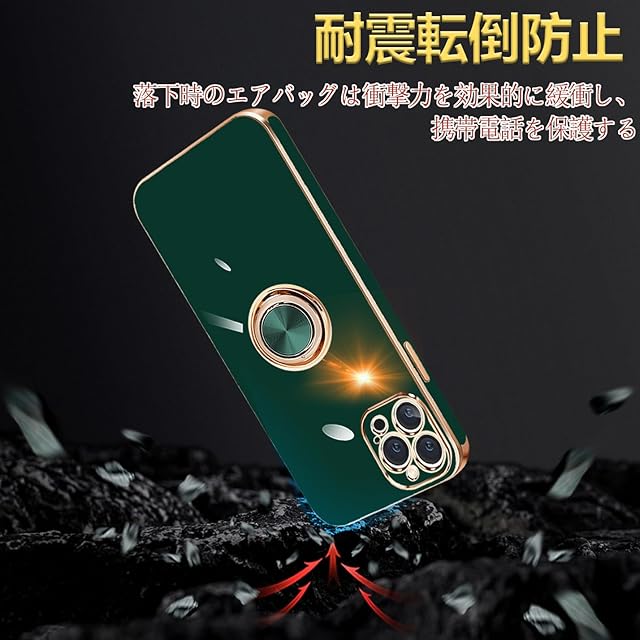 MiaoKeDa iPhone 14 ProMax ケース リング 耐衝撃 いphone14ProMax リング付き スマホケース TPU 車載ホルダー ストラップホール付き メッキ加工 カバー ダークグリーン