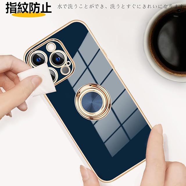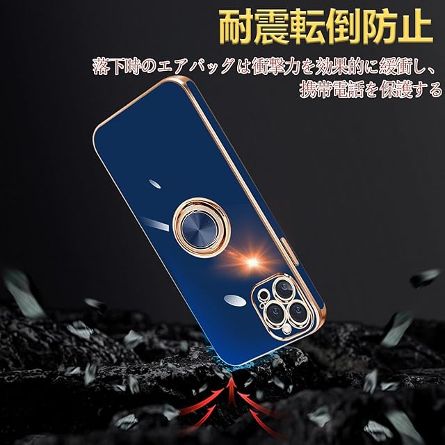 商品名:MiaoKeDa iPhone 14 ProMax ケース リング 耐衝撃 いphone14ProMax リング付き スマホケース TPU 車載ホルダー ストラップホール付き メッキ加工 カバー ネイビーブルー