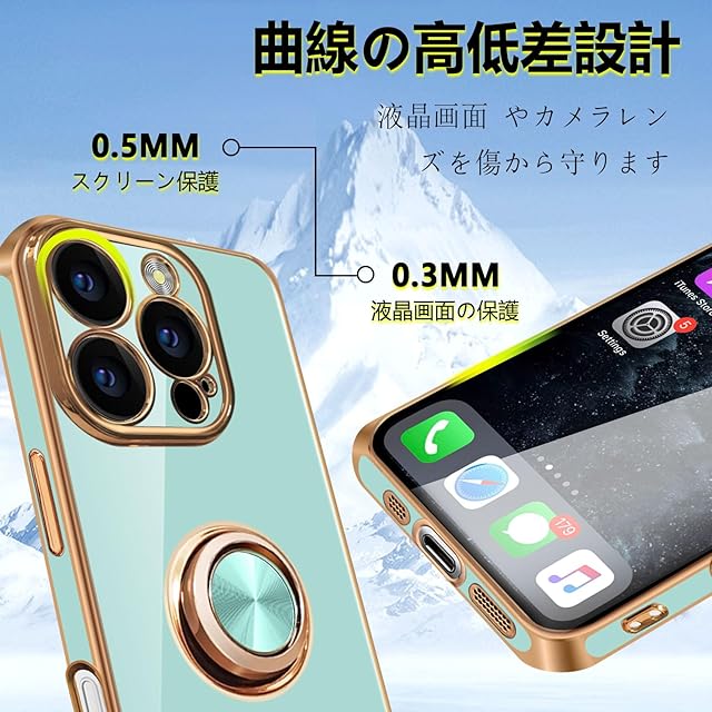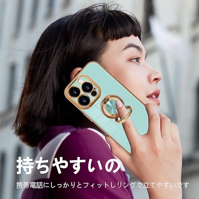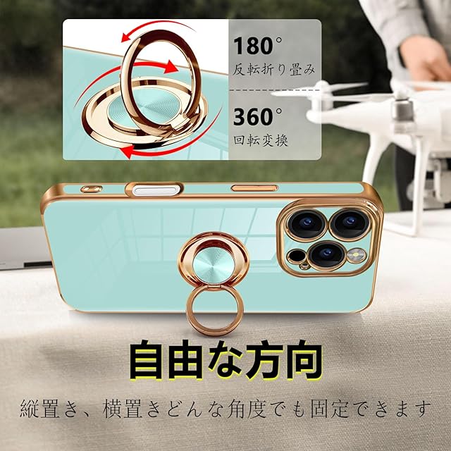 商品名:MiaoKeDa iPhone 16 Pro ケース リング 耐衝撃 いphone16Pro リング付き スマホケース TPU 車載ホルダー ストラップホール付き メッキ加工 カバー ライトシアン