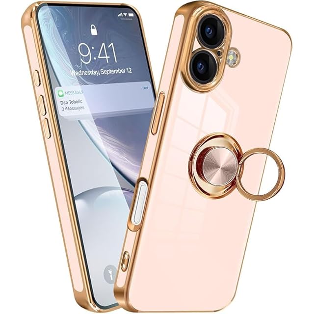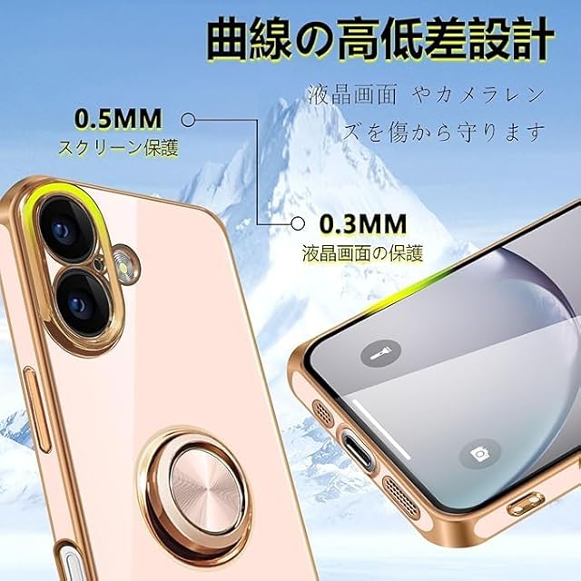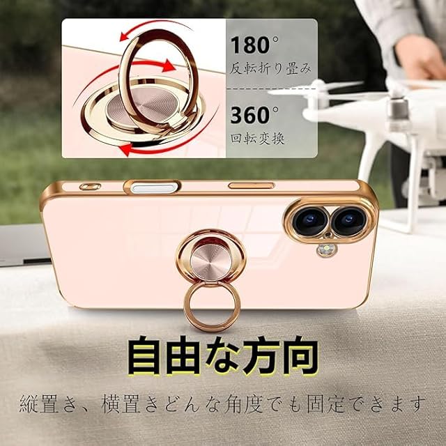 商品名:対応iPhone17 ケース リング いphone 17 リング付き スマホケース TPU 車載ホルダー対応 360°回転 ストラップホール付き メッキ加工 カバー ピンク