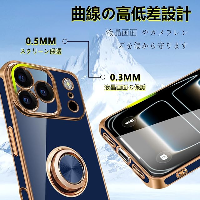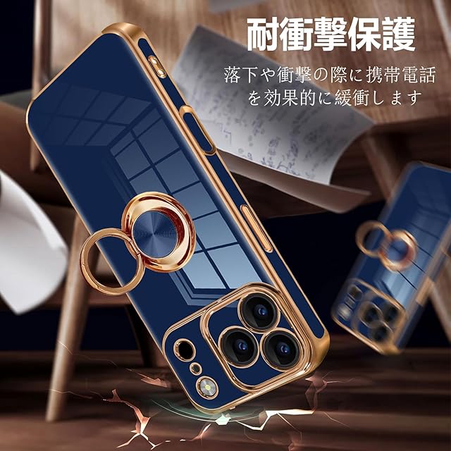 商品名:Phone 17 promax ケース リング付き いphone17 pro max リング スマホケース 車載ホルダー アイフォーン 17promax TPU ストラップホール付き メッキ加工 カバー ネイビーブルー