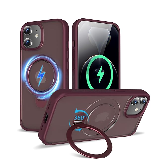 【2025新開発・定点360度回転スタンド】KWATUNG iPhone 12 用ケース iPhone 12 Pro 用ケース MagSafe対応 ワイヤレス充電 アイフォン12ケース 隠し収納式スタンド 横縦両立 角度調整 スマホケース iphone 12Pro 用 マグネット搭載 超強磁力 アイホン12Pro用ケース 指紋防止 米軍MIL規格 耐衝撃 マット仕上げ 黄変防止【暗赤色】