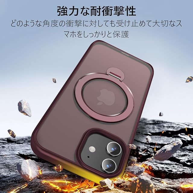 商品名:【2025新開発・定点360度回転スタンド】KWATUNG iPhone 12 用ケース iPhone 12 Pro 用ケース MagSafe対応 ワイヤレス充電 アイフォン12ケース 隠し収納式スタンド 横縦両立 角度調整 スマホケース iphone 12Pro 用 マグネット搭載 超強磁力 アイホン12Pro用ケース 指紋防止 米軍MIL規格 耐衝撃 マット仕上げ 黄変防止【暗赤色】