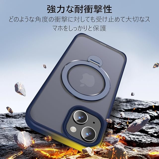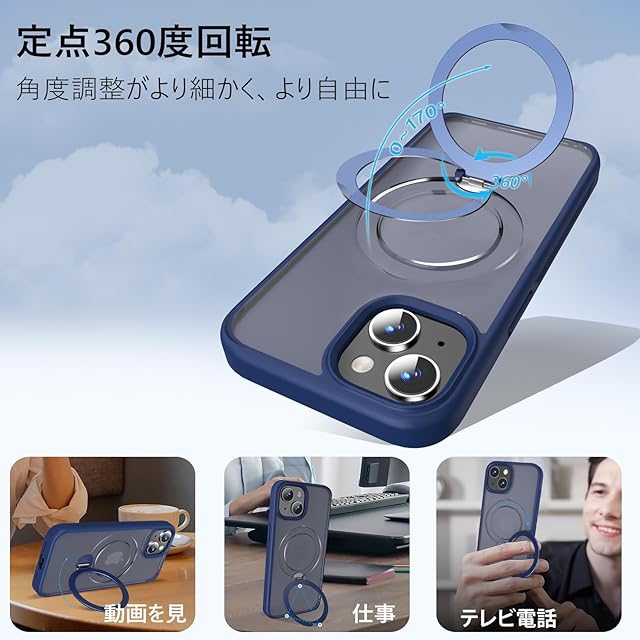 商品名:【2024新開発・定点360度回転スタンド】KWATUNG iphone 15 用 ケース MagSafe対応 ワイヤレス充電対応 アイフォン15 用 ケース 隠し収納式スタンド 横縦両立 角度調整 スマホケース iphone 15 用 リング マグネット搭載 超強磁力 アイホン15用ケース 指紋防止 滑り止め 米軍MIL規格耐衝撃 マット仕上げ 黄変防止【ブルー】