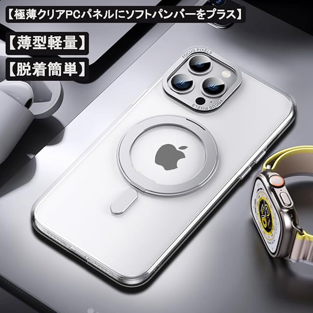 ✅【半透明・マットな仕上げ】本ケース背面のポリカーボネートは、耐久性や耐摩耗性に優れ、マットな質感でサラサラして触り心地がすごく良いです。表面には指紋防止ナノオコーティングを施しており、指紋つく心配はありません。特に、背面は半透明で、高級感と神秘感が溢れ、かっこいいリンゴロゴが見えます。