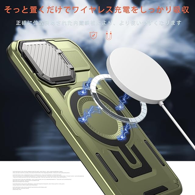 商品名:【強化フィルム2枚付き】HCXLYP iPhone 13 Pro Max ケース MagSafe対応 隠れスタンド レンズ保護 いphone13promax ケース ワイヤレス充電対応 スマホケース アイホン13promax 携帯ケース 耐衝撃 傷防止 全面保護 米軍MIL規格 濃い緑色