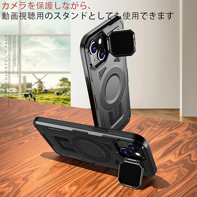 HCXLYP iPhone 14 ケース いphone13 ケース MagSafe対応 隠れスタンド レンズ保護 いphone14 ケース ワイヤレス充電対応 スマホケース アイホン13 携帯ケース 耐衝撃 傷防止 全面保護 米軍MIL規格