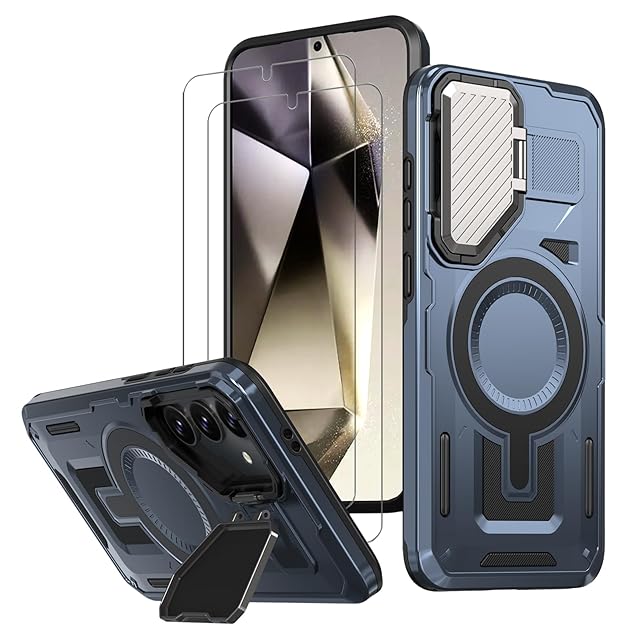 【強化フィルム2枚付き】HCXLYP Galaxy S23 FE ケース MagSafe対応 隠れスタンド レンズ保護 Galaxy S23fe ケース ワイヤレス充電対応 スマホケース SCG24 ギャラクシーS23fe 携帯ケース 耐衝撃 傷防止 全面保護 米軍MIL規格 ブルー