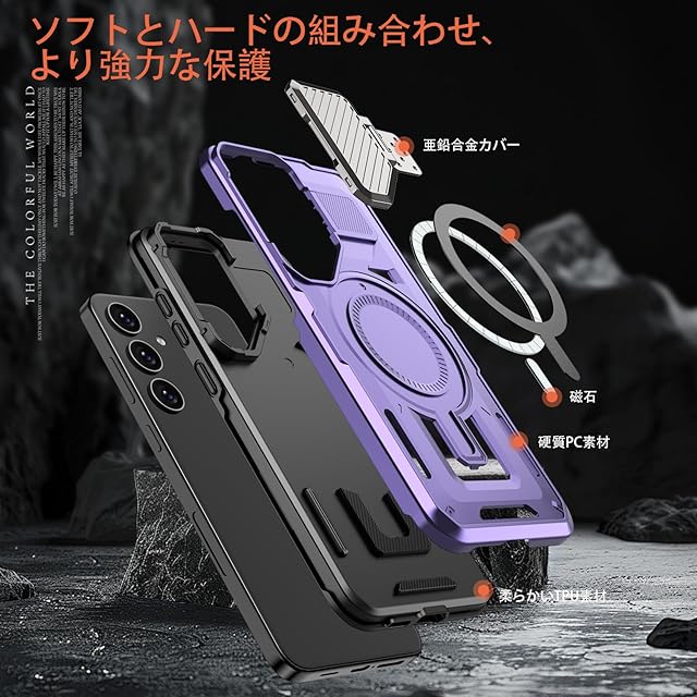 商品名:【強化フィルム2枚付き】HCXLYP Galaxy S24 FE ケース MagSafe対応 隠れスタンド レンズ保護 Galaxy S24fe ケース ワイヤレス充電対応 スマホケース SCG30 ギャラクシーS24fe 携帯ケース 耐衝撃 傷防止 全面保護 米軍MIL規格 濃い紫色