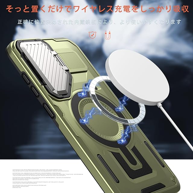 【N45マグネット、Magsafe対応、ワイヤレス充電対応】ワイヤレス充電器、モバイルバッテリー、指輪、財布、カーマウントなどのさまざまなアクセサリーと組み合わせることで、MagSafe対応の場所にスマートフォンを磁力で貼り付けることができ、生活がさらに便利になります。(対応機種:Galaxy S24/S25 用 ケース)