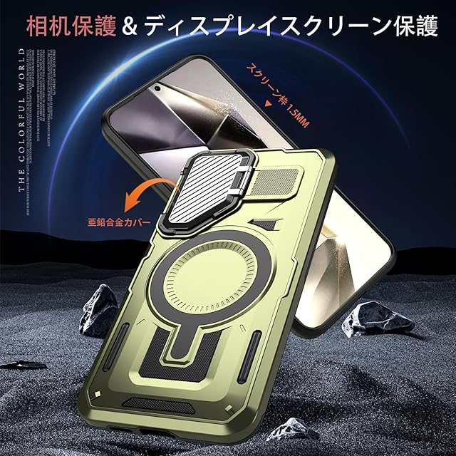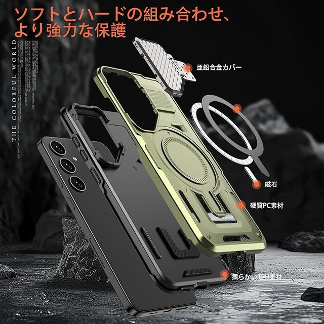 商品名:【強化フィルム2枚付き】HCXLYP Galaxy S25 ケース MagSafe対応 隠れスタンド レンズ保護 Galaxy S24 ケース ワイヤレス充電対応 スマホケース SC-51E SCG25 ギャラクシーS25 携帯ケース 耐衝撃 傷防止 全面保護 米軍MIL規格 濃い緑色