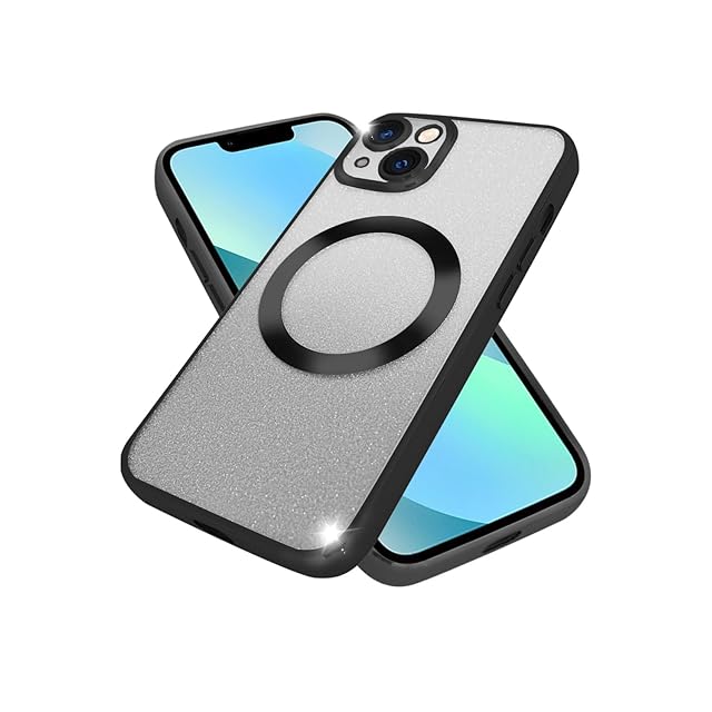 シズカウィルRe iPhone 13 ケース MagSafe対応 きらきら レンズ保護 カバー ワイヤレス充電 耐衝撃 ハイブリッド6 スマホケース 1個入り ラメ ブラック