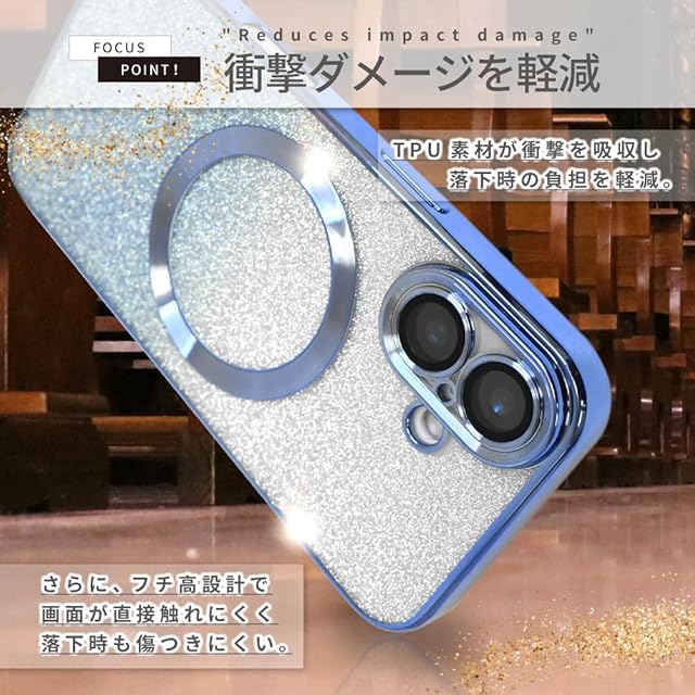商品名:シズカウィルRe iPhone 16e ケース MagSafe対応 きらきら レンズ保護 カバー ワイヤレス充電 耐衝撃 ハイブリッド6 スマホケース 1個入り ラメ シルバー