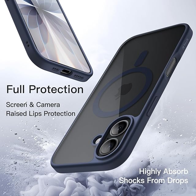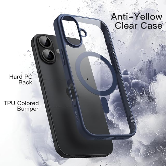 JETech iPhone 17 6.3インチ用 マグネット ケース MagSafeに対応 衝撃吸収 バンパーカバー ソリッドカラーマットTPUフレーム 傷つけ防止 クリアバック (ストームブルー)