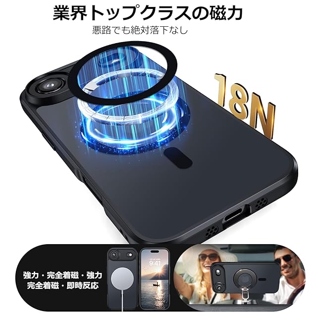 【MagSafe完全対応】内蔵強力マグネットが全てのMagSafeアクセサリーとシームレス接続。ワイヤレス充電・カーチャージャー・グリップスタンドなど、多彩なアイテムが装着可能です。