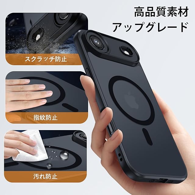 商品名:DUEDUE iPhone Air ケース MagSafe対応 マット感 ブラック マグネット搭載 アイフォン Air ケース 半透明のデザイン 肌触り 滑り止め 磁気吸着 耐衝撃 黄変防止 軽薄 手汗防止 TPU レンズ保護 指紋防止 一体型 ワイヤレス充電
