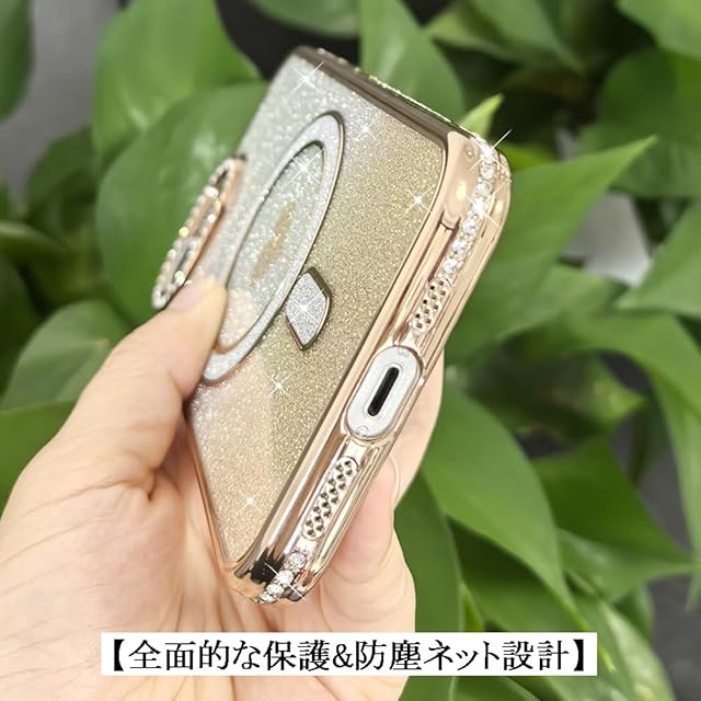 YUYIB スマホケース ケース MagSafe対応 クリア メッキ加工 ドリル ハートシール きらきら ブリンブリン かわいい おしゃれ 軽量 薄型 衝撃吸収 女性 ストラップ穴あり 磁気ケース