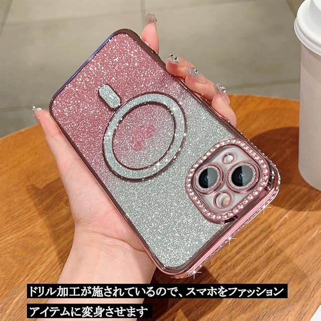 商品名:YUYIB スマホケース 対応 iPhone 13 ケース MagSafe対応 クリア メッキ加工 ドリル ハートシール きらきら ブリンブリン かわいい おしゃれ 軽量 薄型 衝撃吸収 女性 ストラップ穴あり アイフォン13 磁気ケース (ピンク, iPhone 13)