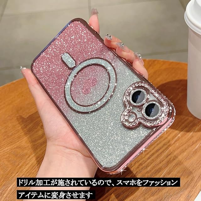 YUYIB スマホケース ケース MagSafe対応 クリア メッキ加工 ドリル ハートシール きらきら ブリンブリン かわいい おしゃれ 軽量 薄型 衝撃吸収 女性 ストラップ穴あり 磁気ケース