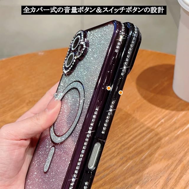 YUYIB スマホケース ケース MagSafe対応 クリア メッキ加工 ドリル ハートシール きらきら ブリンブリン かわいい おしゃれ 軽量 薄型 衝撃吸収 女性 ストラップ穴あり 磁気ケース