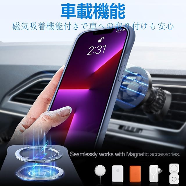 【MagSafe対応】すべてのMagSafeアクセサリをサポート。磁石を内蔵したiPhone用に設計され、すべてのMagSafeアクセサリと互換性があります。 アップルに内蔵された超強磁石は吸着力を強化し、携帯電話をMagSafe充電器や磁気カードホルダーに自動的にロックします、一瞬でピッタリと高速充電を実現。いくら振っても落ちないので、充電しながらゲームをやっても問題なし。