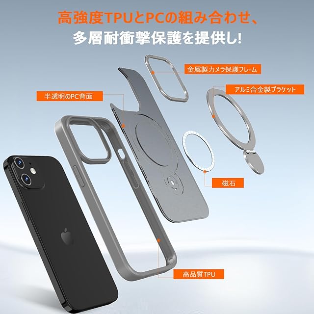 商品名:iphone 12 用 ケース MagSafe対応 iPhone 12 Pro ケース ワイヤレス充電 いphone12カバー 高耐久性 米軍MIL規格 アイフォン12Pro カバー リング スタンド マグネット搭載 スマホケース iphone12Pro 縦横両対応 スマホカバーアイフォン 12 全面保護 軽量 マット仕上げ 半透明(6.1インチ)グレー【SHANGHAO】
