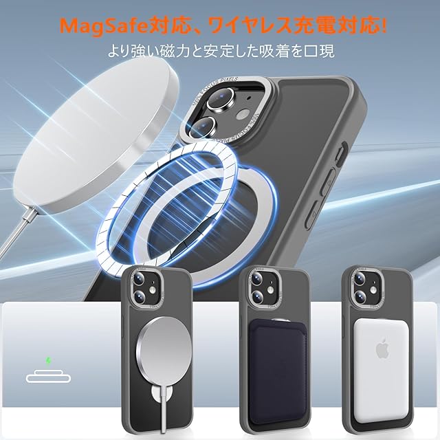 【MagSafe対応・強力な磁力吸着】アイフォン12/12pro用ケースには、N52の高強度MagSafeテクノロジーが採用されており、MagSafe金具がしっかりと固定されて安定性を確保し、簡単に外れることはありません。携帯電話ケースには磁力がアップグレードされた強力なマグネットが搭載されています。ワイヤレス充電、モバイル電源、カーマウント、その他すべてのMagSafeアクセサリにも適しています。安定性を持ち、充電器を近づけると高速ワイヤレス充電が実現です。強力な吸着力で、ワイヤレス充電のためにスマートフォンケースを取り外す必要はありません。