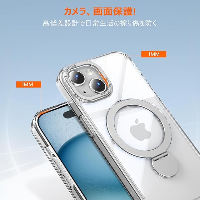 商品名:iphone 15 plus 用 ケース MagSafe対応 ワイヤレス充電 いphone15 plus ケース 高耐久性 米軍MIL規格 アイフォン 15 plus カバー リング スタンド マグネット搭載 スマホケース iphone 15 plus 隠し収納式 縦横両対応 スマホカバー アイフォン 15 plus 全面保護 軽量 黄変防止(6.7インチ)クリア【SHANGHAO】