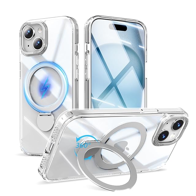 iphone 15 plus 用 ケース MagSafe対応 ワイヤレス充電 いphone15 plus ケース 高耐久性 米軍MIL規格 アイフォン 15 plus カバー リング スタンド マグネット搭載 スマホケース iphone 15 plus 隠し収納式 縦横両対応 スマホカバー アイフォン 15 plus 全面保護 軽量 黄変防止(6.7インチ)クリア【SHANGHAO】
