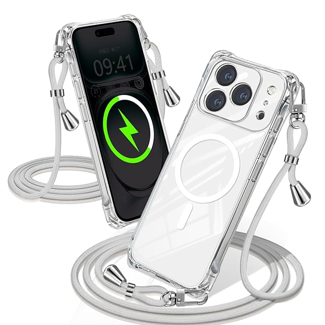 商品名:XIOYATY iPhone 17 Pro Max 用の ケース クリア ショルダー MagSafe対応 耐衝撃 アイフォン17 Pro Max 用の カバー 透明 スマホケース マグセーフ対応 肩がけ 首掛け 紐付き 縄掛け 斜めがけ 調節可能なショルダー 多目的キャリー ファッションデザイン TPUスマホ (グレー)