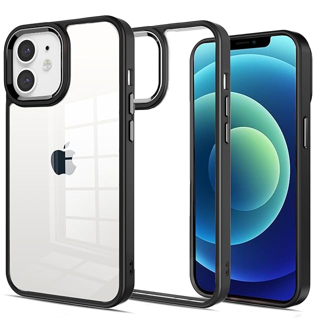 iPhone 12 12 Pro 用 ケース 背面クリア 耐衝撃 滑り止め 指紋防止 米軍MIL規格 黄変防止 ストラップホール付き ワイヤレス充電対応 スマホケース アイフォン 12Pro PinLiSheng (ブラック, iPhone 12/12Pro 用)