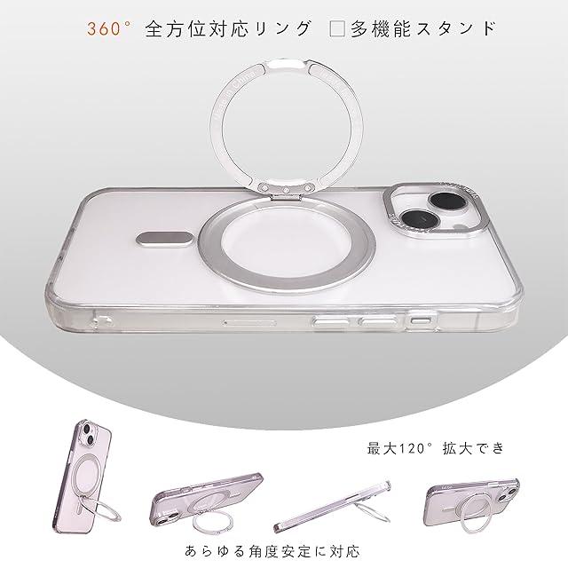 商品名:iPhone 14 / iPhone 13 用 クリアケース 360度回転 スタンド MagSafe対応 アイフォン14 / アイフォン13 カバー ワイヤレス充電 SUGOIDAN 携帯ケース リング アイホン14 / アイホン13 ケース 透明 マグセーフ 軽量 スマホケース (クリア)