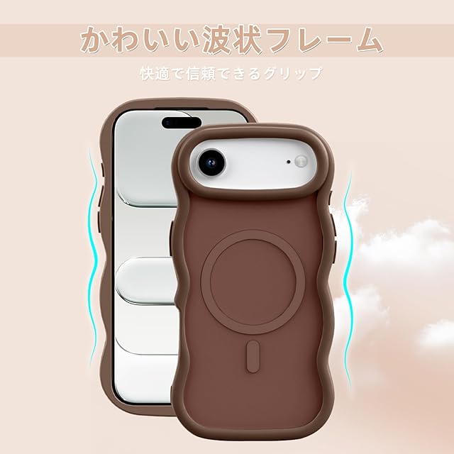 商品名:HeeNia iPhone Air ケース(17 Air) MagSafe対応 耐衝撃 半透明 アイフォン17 air ケース マグネット搭載 iPhone 17airカバー 軽量 波形 薄型 マット感 指紋防止 滑り止め 軽薄型 PC背面TPUバンパー 黄変防止 米軍MIL規格 ストラップホール付き ワイアレス充電対応 (ブラウン)