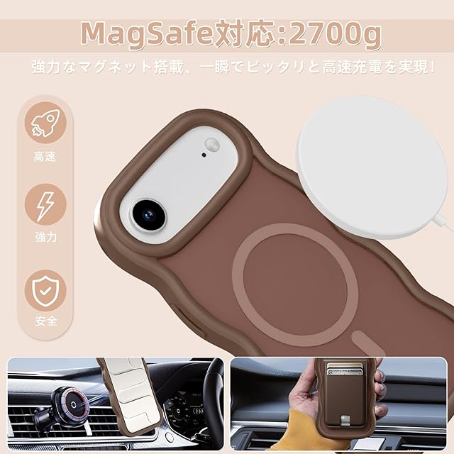 【より強力なマグネットロック】:2,700gの保持力を持つ強力な内蔵マグネットは、より速く、より簡単な瞬間吸着ワイヤレス充電を可能にし、あらゆるMagSafeアクセサリーに安全なロックを提供します。このiphone 17 airケースは、iphone 17 air magsafeアクセサリーを使用する方に最適です。