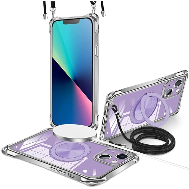 商品名:iPhone 13 用 ケース 縦横両対応 360° 回転スタンド リング マグネット搭載 MagSafe 対応 ワイヤレス充電対応 い phone 13 ケース 肩掛け 斜めかけ 縄掛け 耐衝撃 車載ホルダー 対応 ストラップ穴付き