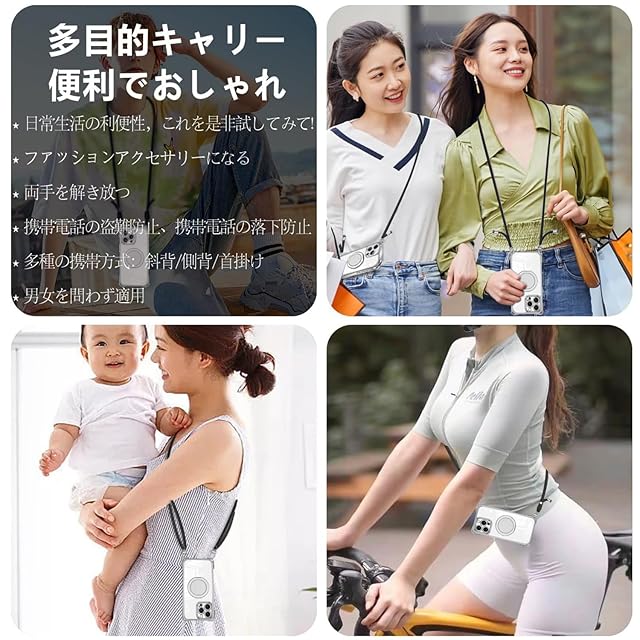 【互換性モデル】iPhone 15 Pro Max 適用 ケース。※ご注意:ご注文する前に、必ずお買い求めの機種とカラーを確認してください。 【360°回転スタンド · 縦も横も思いのまま】iPhone 15 Pro Max 用ケースは、革新的なスタンドデザインを採用しています。ケースの携帯性や省スペース性を新たなレベルに引き上げました。さらに、縦向きでも横向きでも安定して置くことができます。0°~120°の間で自由に調整できます。動画視聴、オンライン授業、リモート会議、ビデオ通話などで大活躍、あらゆる視聴の瞬間をお楽しみください。 【全面保護】優れた保護性能,耐久性に優れた、傷がつきにくい,衝撃吸収性の高いTPU素材,衝撃やキズ、埃などからしっかりとスマホの背面を守ります。で落下衝撃から本体をしっかりと守ってくれます。フチをわずかに高く設計することで、日常生活の消耗に耐えしっかり保護できる、スマホへの傷つけを防止します。スマホを落としてしまっても衝撃を最小限に抑えるケース。専用にオリジナル設計しているためぴったりとフィットし、保護性能には欠かせないポイントとなっています。 【長さ調整可能 & ストラップの脱着が1秒で可能】調節可能なストラップにより、サイド、またはフロントに持ち運べるときに完璧にあなたの隣に掛けることができます。 このアクセサリーはファッションだけでなく、通常のストラップよりも快適で実用的です。それらは非常に耐性があり、湿気を吸収せず、無臭で乾燥しています。 それはあなたの手に自由を与えます。 ネックストラップはお好みの長さに調節できます。ストラップはいつでも取り外して身につけることができます、好きなように着こなす。 【製品】 万が一購入商品に不具合がありましたら、弊社カスタマーサービスまでご連絡ください。お問い合わせ内容に応じて代替品交換または返金が可能です。安心してご購入ください。