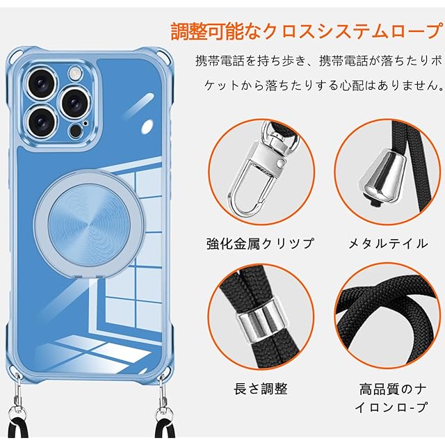 商品名:iPhone X/XS 用 ケース 縦横両対応 360° 回転スタンド リング マグネット搭載 MagSafe 対応 ワイヤレス充電対応 い phoneX/XS ケース 肩掛け 斜めかけ 縄掛け 耐衝撃 車載ホルダー 対応 ストラップ穴付き