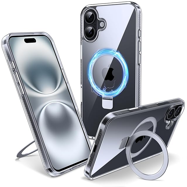 【隠しスタンド リング・MagSafe対応】Flyzooケース用のiPhone 16 [ワイヤレス充電対応 多機能一体] クリアで透明な 黄ばみ防止 米軍MIL規格 耐衝撃 高耐久性 傷つけ防止 滑り止めグリップ マグネットホルダースマホ保護カバー 6.1インチ(クリア)
