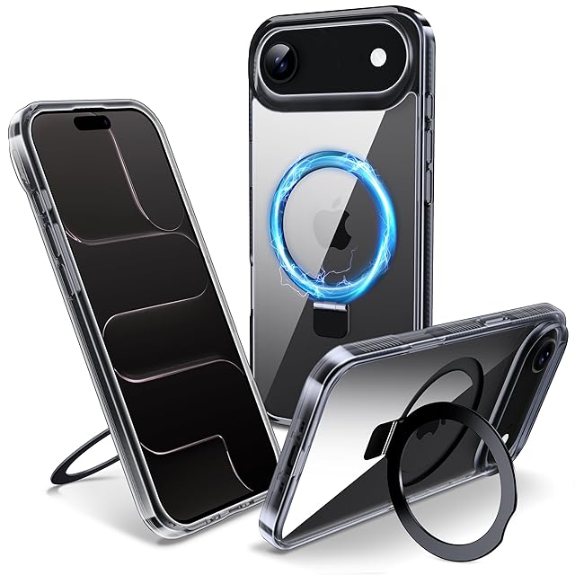 【隠しスタンド リング・MagSafe対応】Flyzooケース用のiPhone Air [ワイヤレス充電対応 多機能一体] クリアで透明な 黄ばみ防止 米軍MIL規格 耐衝撃 高耐久性 傷つけ防止 滑り止めグリップ マグネットホルダースマホ保護カバー 6.5インチ(ブラック)