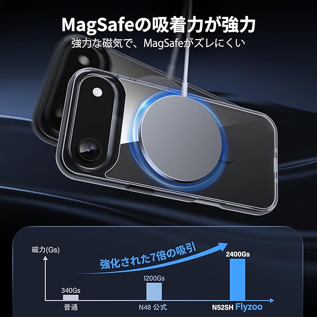 【隠しスタンド&リング・MagSafe対応】Flyzooマグネットホルダーケースは、iPhone Air向けに特別設計された、実用性とスタイルを兼ね備えた高性能スマホケースです。このケースには、折りたたみ式の隠しスタンドとリングが内蔵されており、手軽にスタンド機能を利用できるため、映画視聴やビデオ通話などのハンズフリー操作が可能です。さらに、MagSafe対応設計により、ワイヤレス充電器や各種MagSafeアクセサリーとの完全な互換性を実現。ケースを取り外すことなく、スムーズな充電が可能です。<br><br><b>【透明な黄ばみ防止素材】</b><br>本製品は、クリアで透明な素材を使用し、iPhoneの本来の美しいデザインを保ちながら、長期間使用しても黄ばみを防ぐ特殊なコーティングが施されています。ケースが劣化する心配がなく、いつでも新品のような透明感を維持できます。<br><br><b>【米軍MIL規格準拠の強力な耐衝撃性能】</b><br>落下や衝撃に対して非常に強い設計が施されており、米軍MIL規格(MIL-STD-810G)に準拠しています。この規格に基づいたテストをクリアしているため、最大の保護性能を誇り、日常使用での落下事故にも対応します。万が一の際にも、スマホをしっかりと守り、高い耐久性を持ちながらiPhoneを常に安全に保護します。<br><br><b>【滑り止めグリップ&傷防止機能】</b><br>ケースの側面には、滑り止め加工が施されており、手にしっかりフィットするデザインです。スマホを持っている際に滑り落ちる心配を軽減し、安心して操作が可能です。また、背面には耐スクラッチ加工も施されているため、日常的な使用で傷がつきにくく、長くきれいな状態を保てます。<br><br><b>【多機能一体の便利なデザイン】</b><br>このケースは、ワイヤレス充電対応、スタンド機能、リング、滑り止め、耐衝撃保護がすべて一体となった多機能設計で、利便性を極限まで追求しています。仕事やプライベート問わず、どのようなシーンでも大活躍し、iPhone Airをあらゆる角度でサポートします。<br><br><b>【最適なフィット感&使い勝手】</b><br>6.5インチのiPhone Airにぴったりフィットする精密な設計で、すべてのボタン、スピーカー、充電ポートへのアクセスが簡単。装着したまま、充電や音量調整、スクリーン操作などをストレスなく行えます。